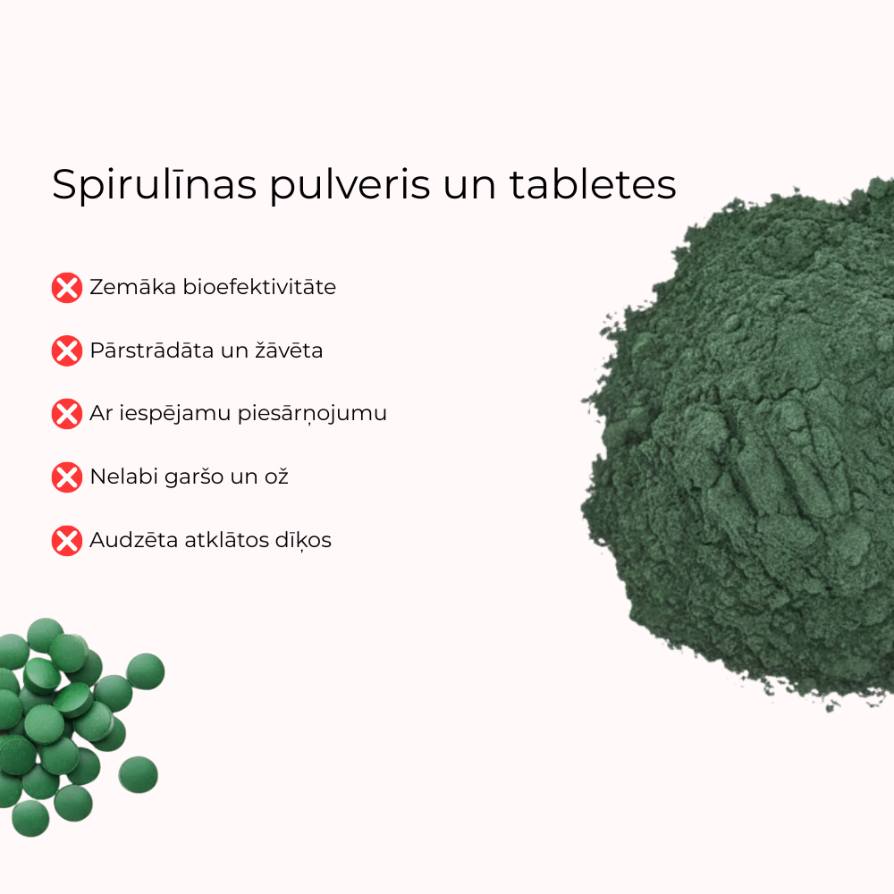 Par 80% augstāka bioefektivitāte nekā spirulīnas pulveros